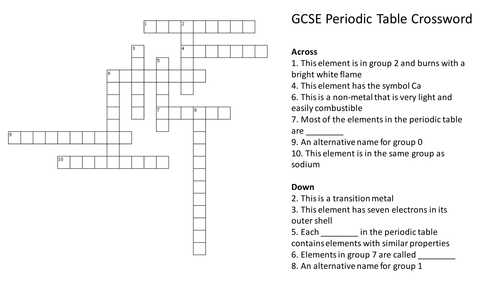 In terms of crossword puzzles, this one on the periodic table of elements and atomic structure has some value. I am a member of the halide family with an atomic number of 53. I am a metal that is liquid at room temperature. Answer key periodic table puzzle answer key the science spot english worksheets past crossword. Periodic table crossword puzzle answer.
